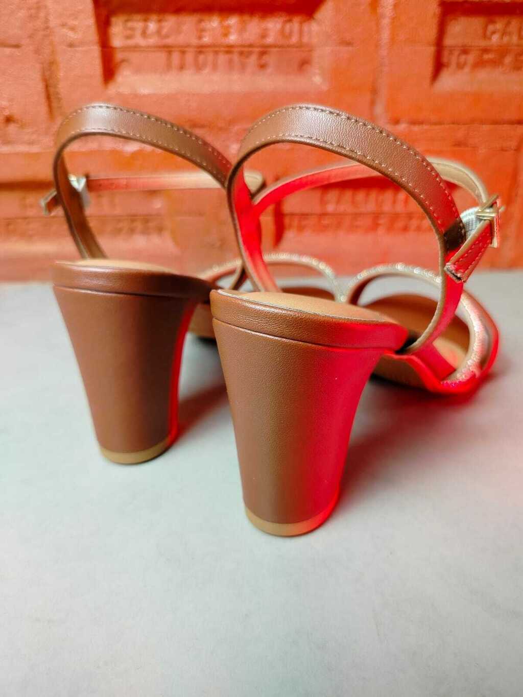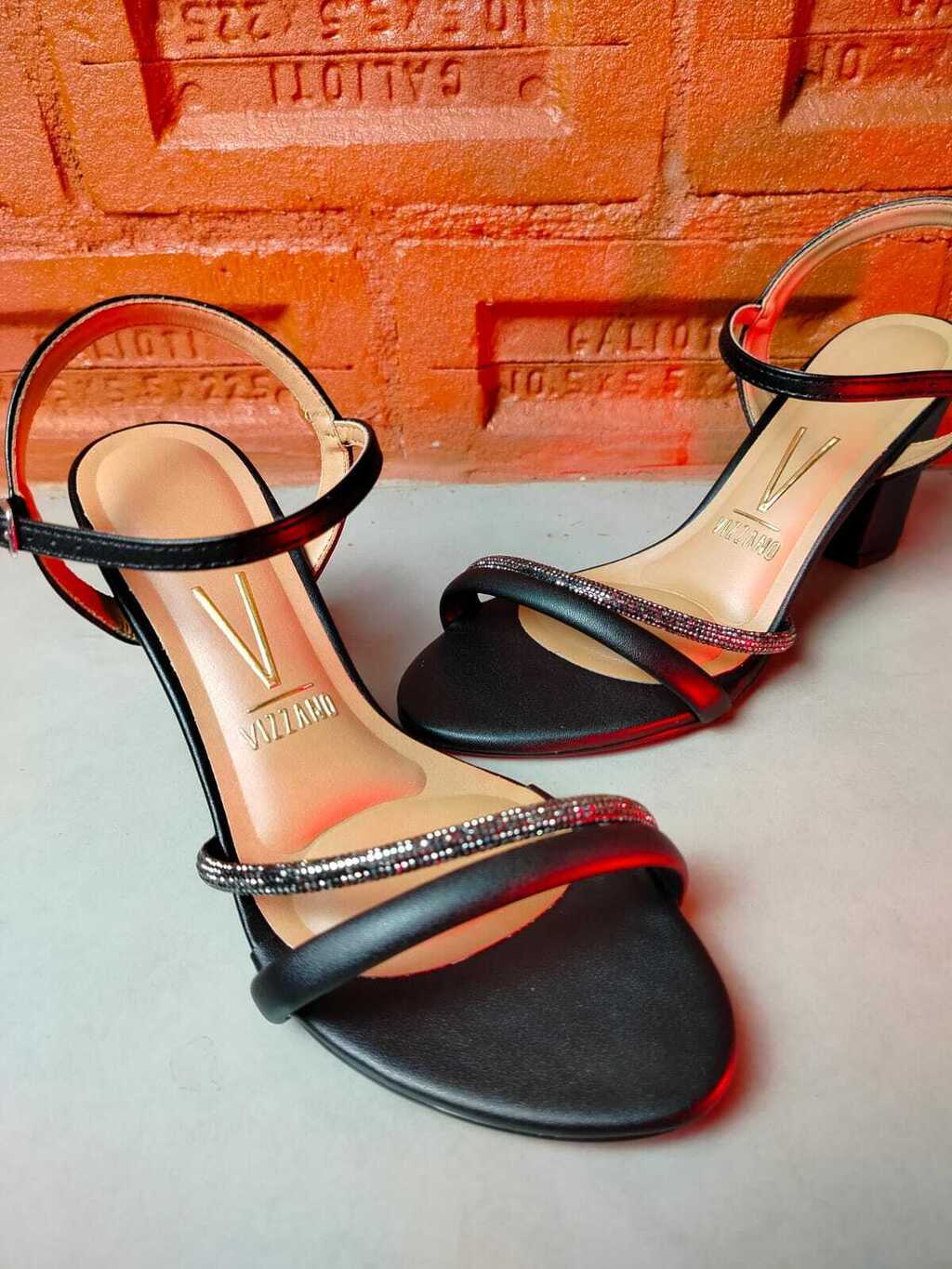 Salto bloco alto (7,5 cm) que proporciona boa postura e segurança ao caminhar.